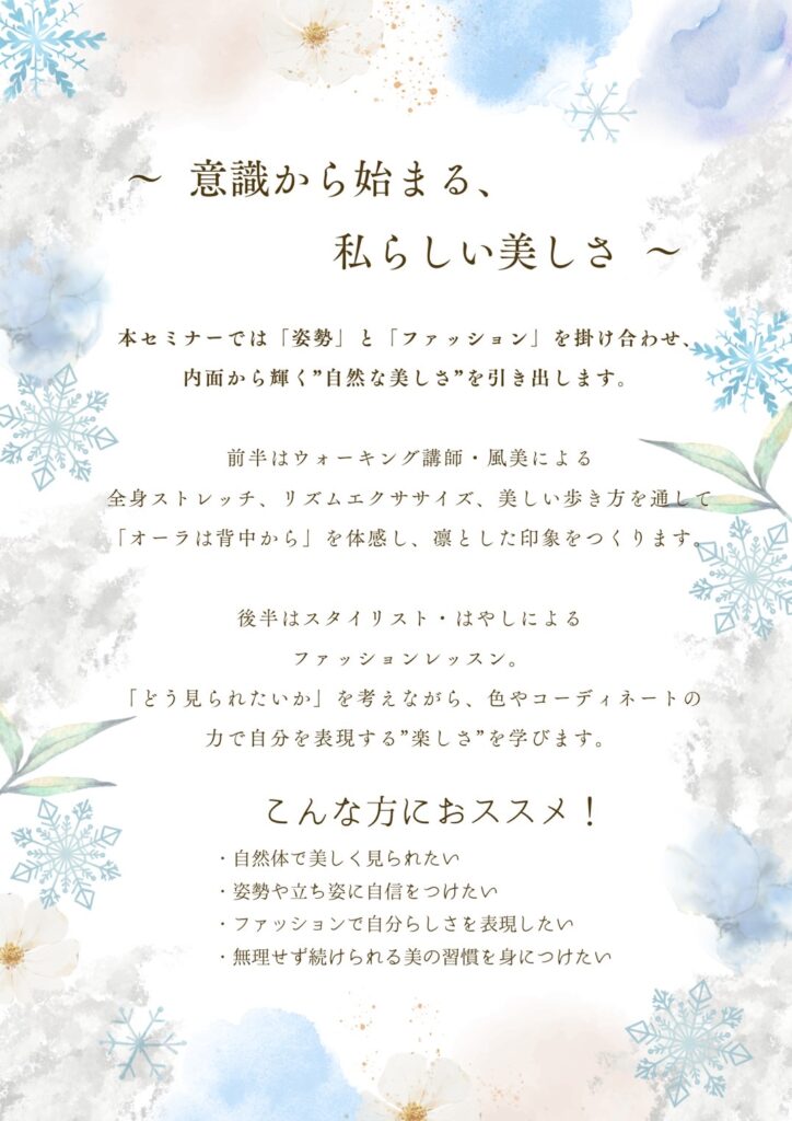 本セミナーでは「姿勢」と「ファッション」を掛け合わせ、