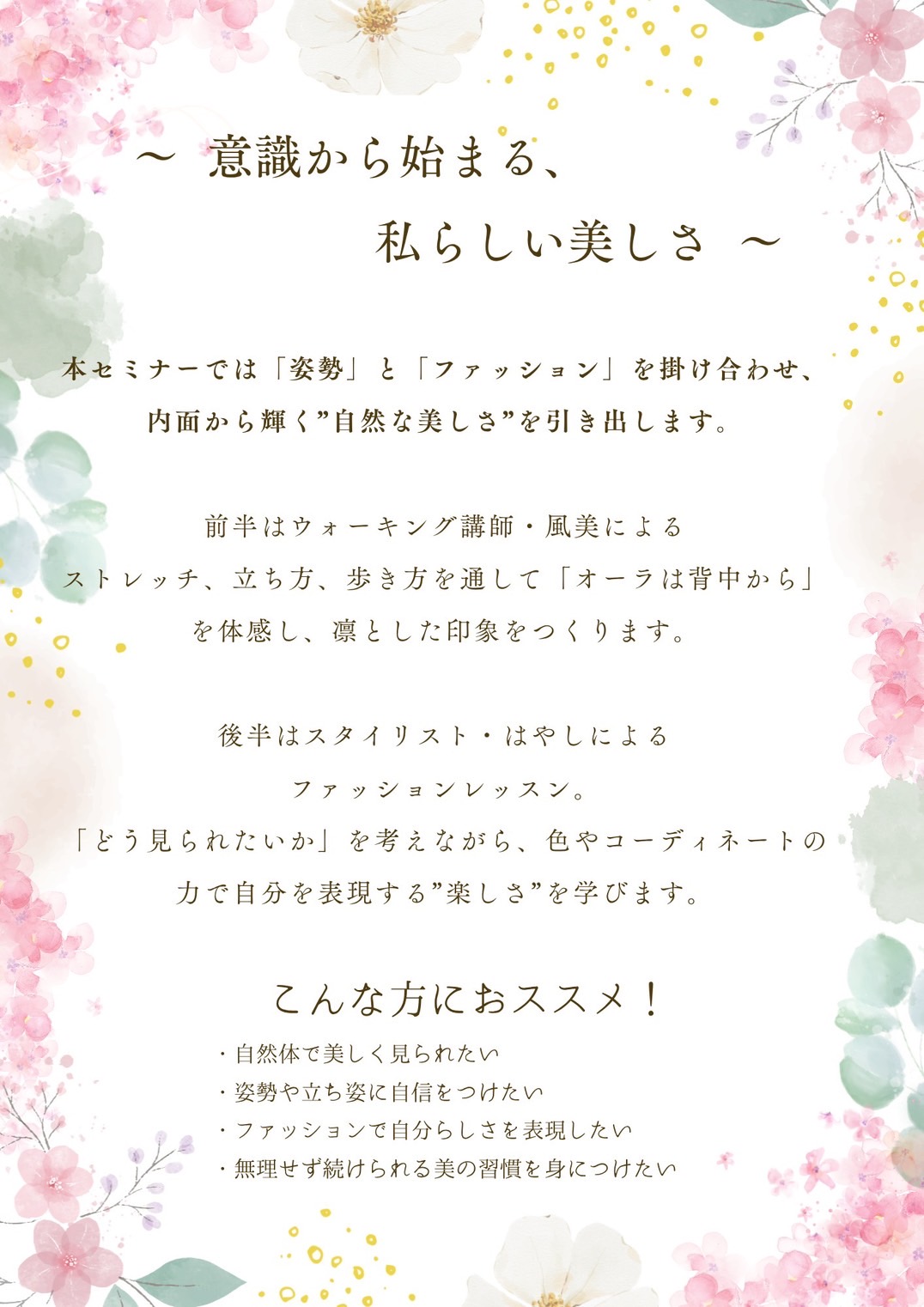 本セミナーでは「姿勢」と「ファッション」を掛け合わせ、